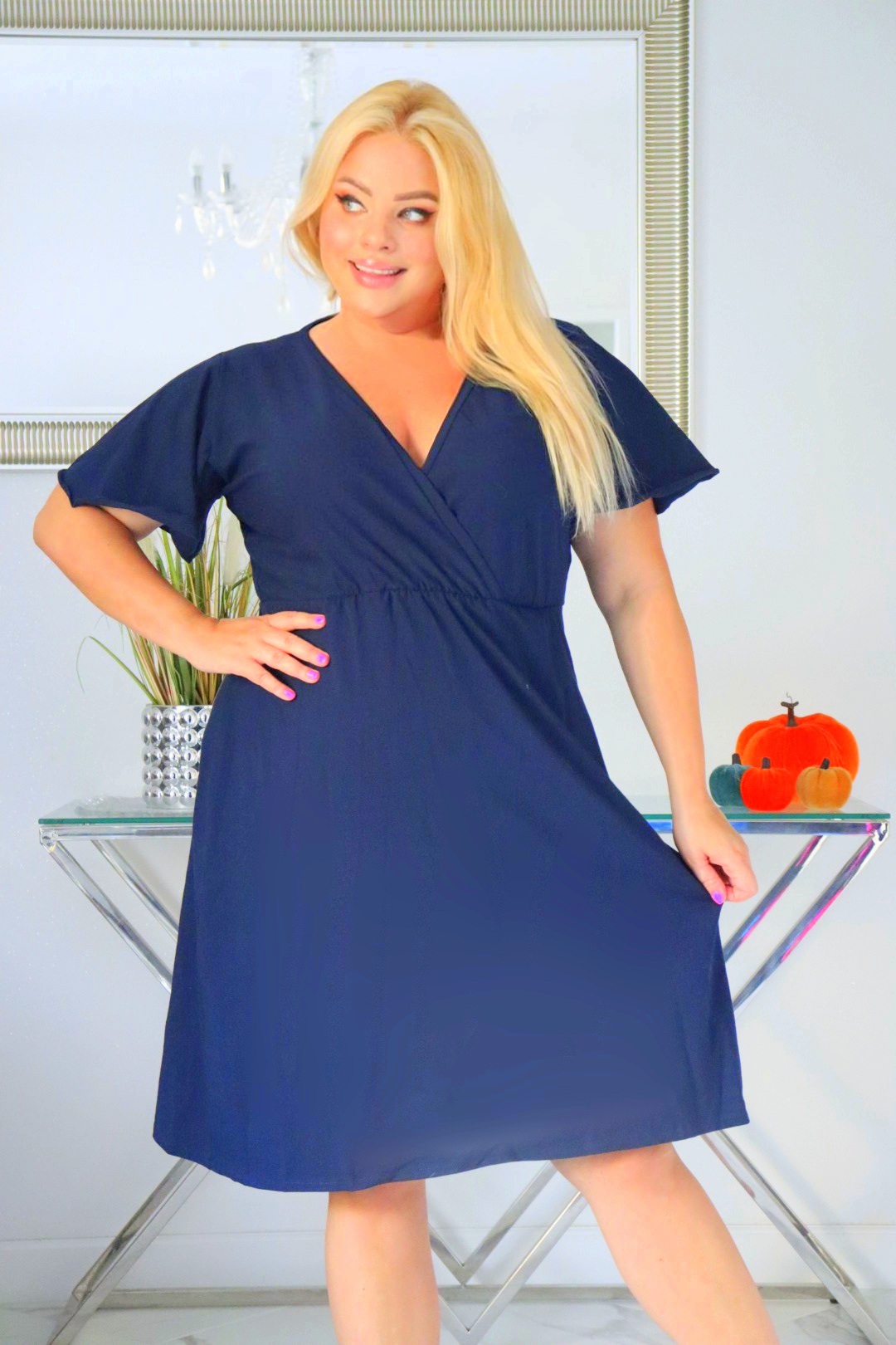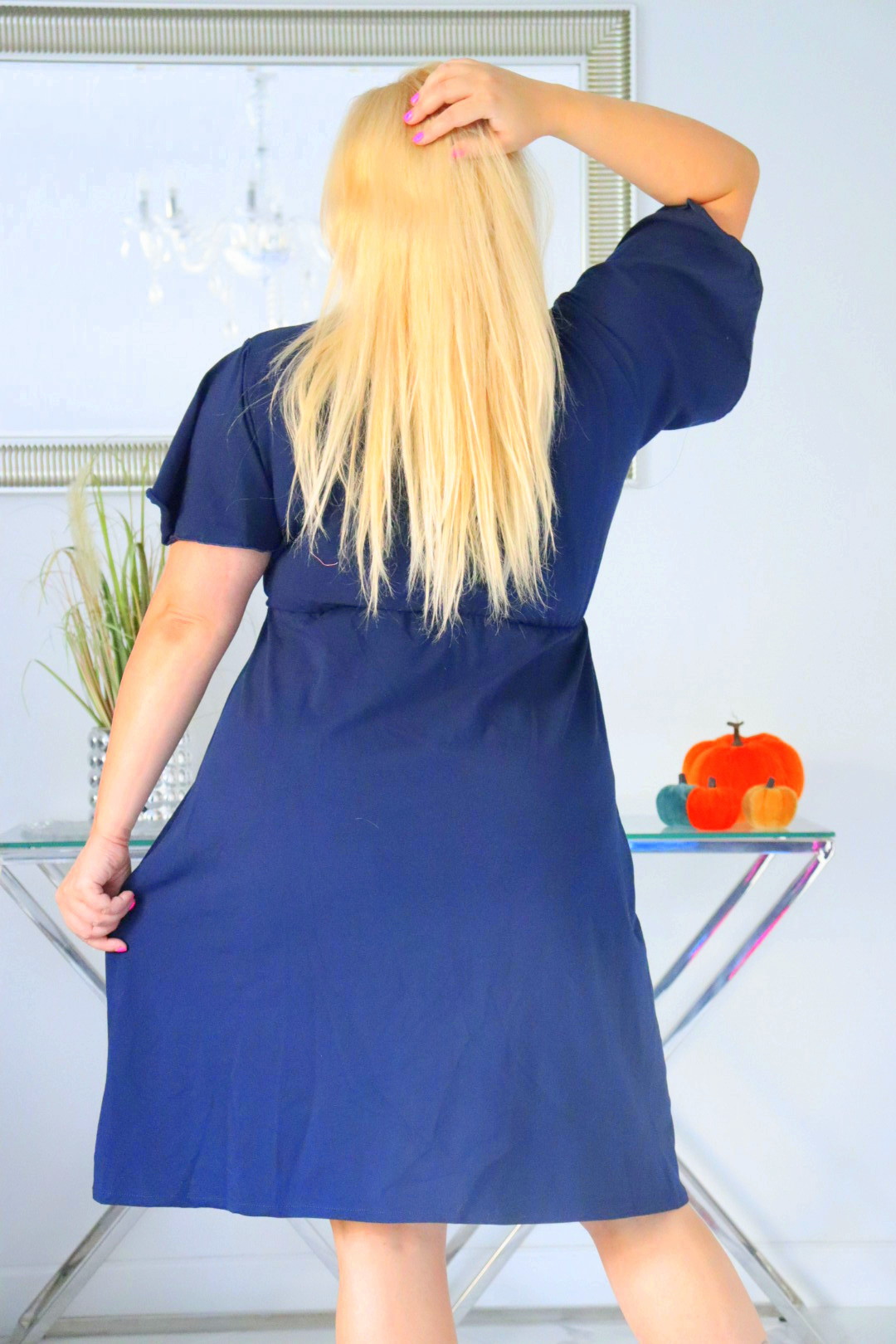 🇵🇱 Polski ProduktSukienka NARINA trapezowa 100% bawełna GRANATOWA NATURALNY SKŁAD