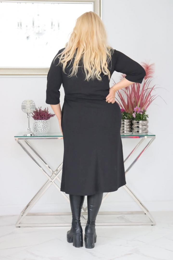 🇵🇱 Polski ProduktSukienka Natasza rozkloszowana midi dzianina wiązana w pasie czarna