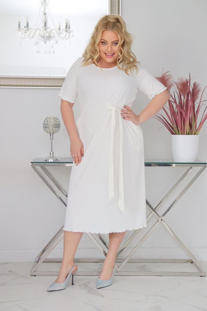 🇵🇱 Polski ProduktSukienka Natasza rozkloszowana midi dzianina wiązana w pasie ecru