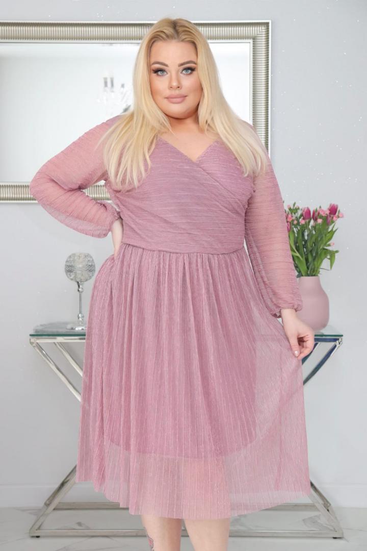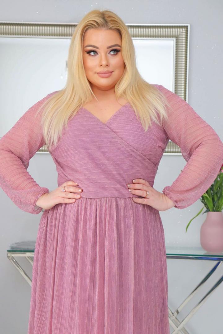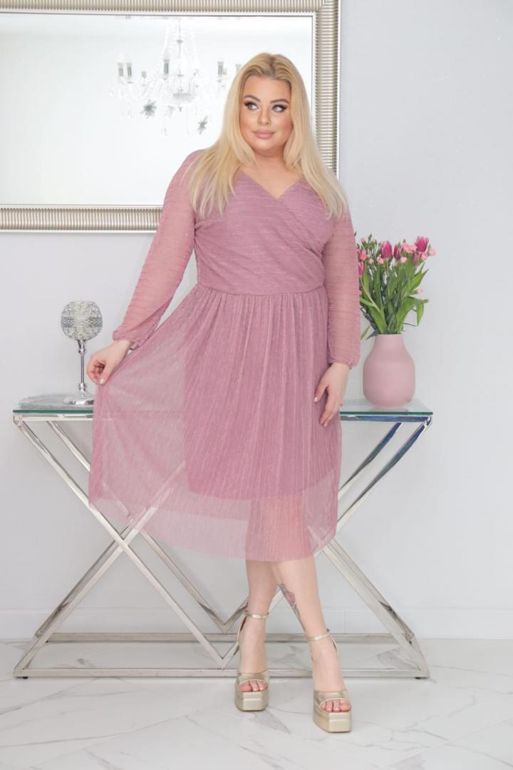 🇵🇱 Polski ProduktSukienka Nessa kopertowa plisowana dzianina ciemny róż PROMOCJA