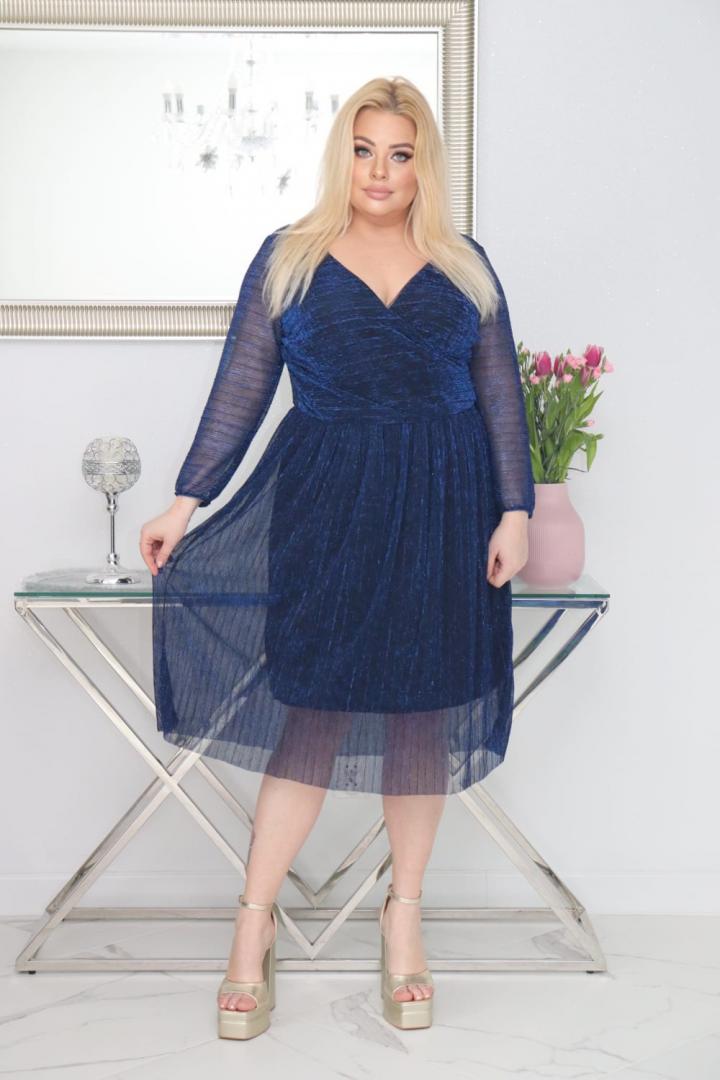 🇵🇱 Polski ProduktSukienka Nessa kopertowa plisowana dzianina granatowa