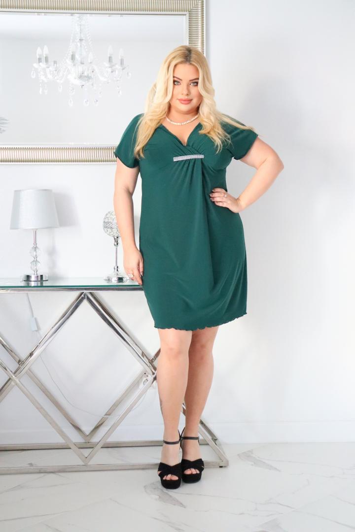 🇵🇱 Polski ProduktSukienka Ofelia dzianinowa z cyrkoniową ozdobą butelkowa zieleń NOWOŚĆ