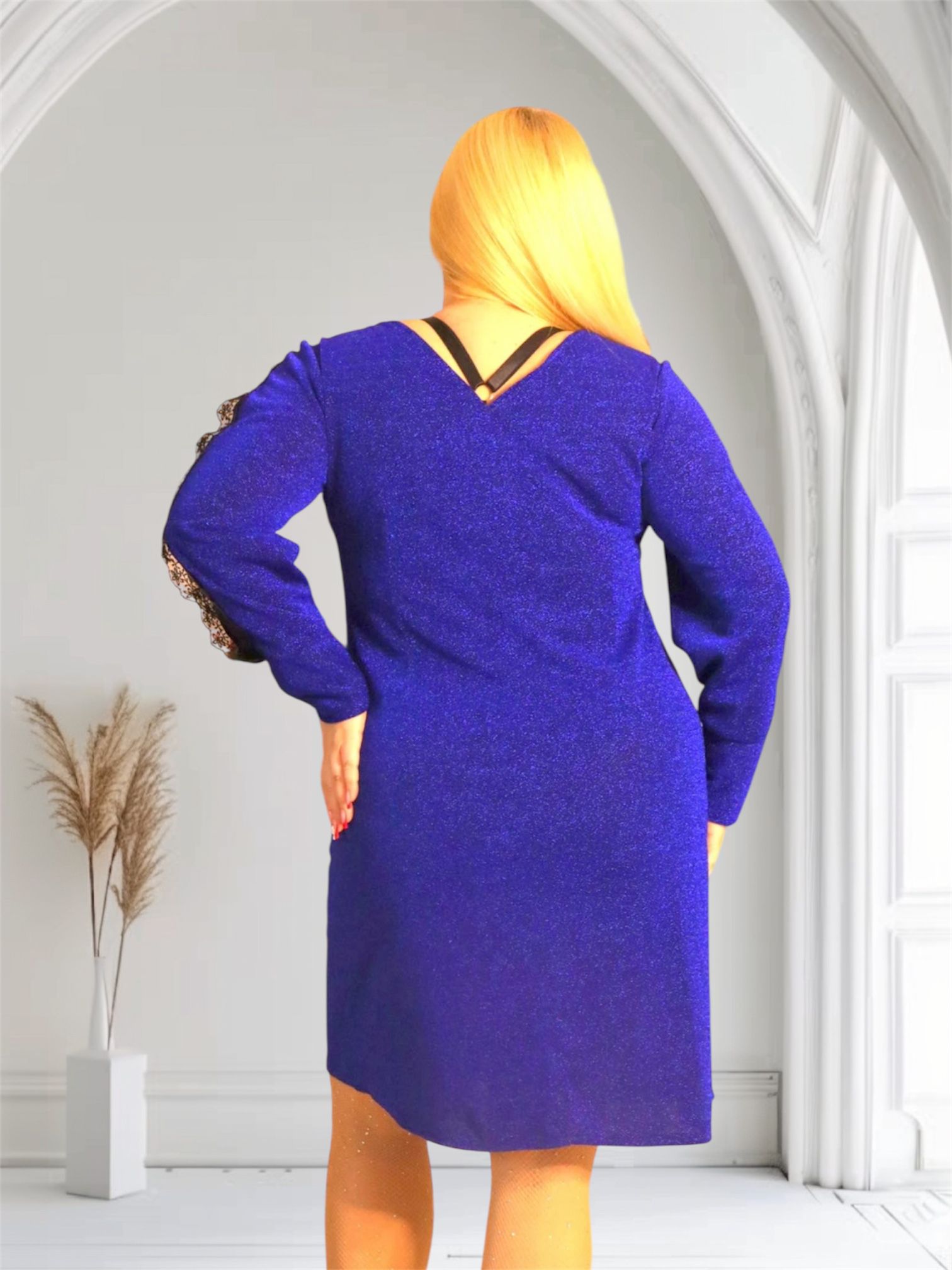 🇵🇱 Polski ProduktSukienka Otavia trapezowa rozcięte rękawy koronka brilliance chabrowa