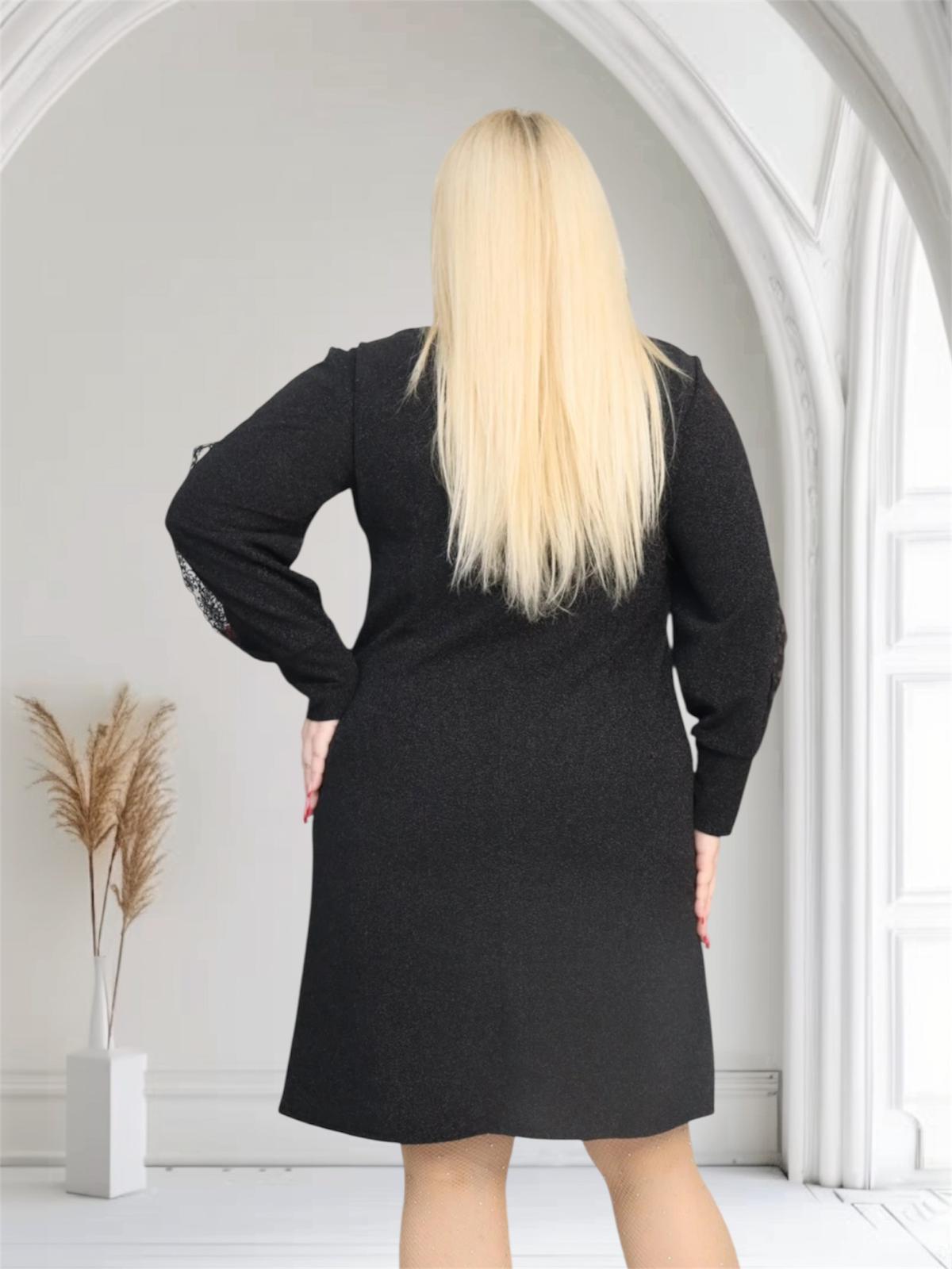 🇵🇱 Polski ProduktSukienka Otavia trapezowa rozcięte rękawy koronka brilliance czarna