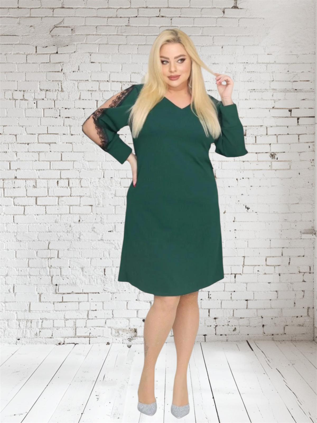 🇵🇱 Polski ProduktSukienka Otavia trapezowa rozcięte rękawy koronka butelkowa zieleń