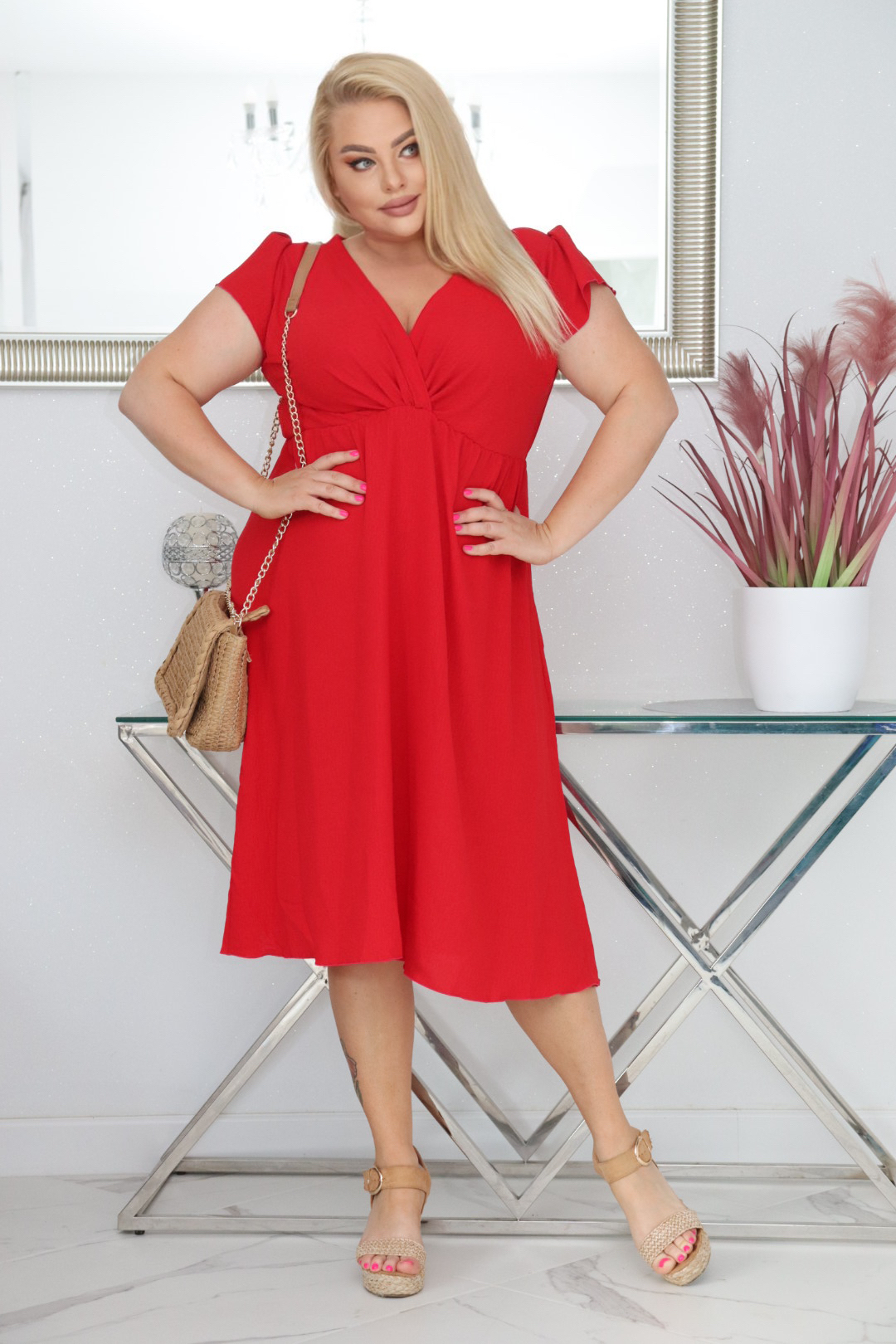 🇵🇱 Polski ProduktSukienka PEGGY trapezowa 100% wiskoza CZERWONA NATURALNY SKŁAD
