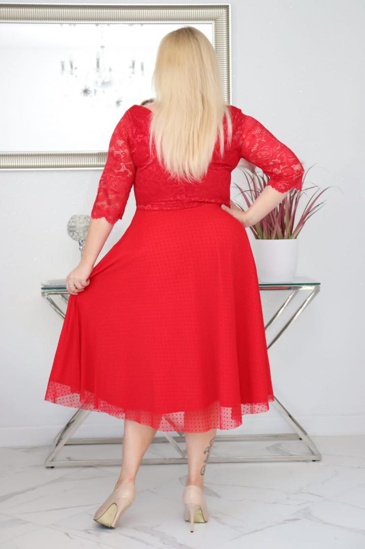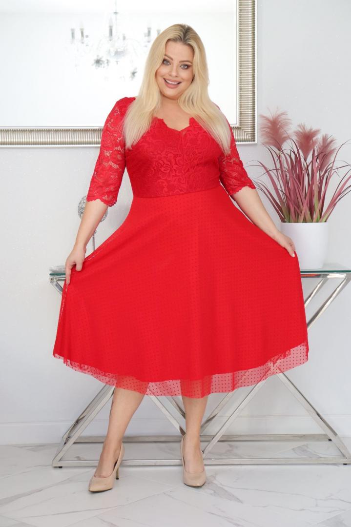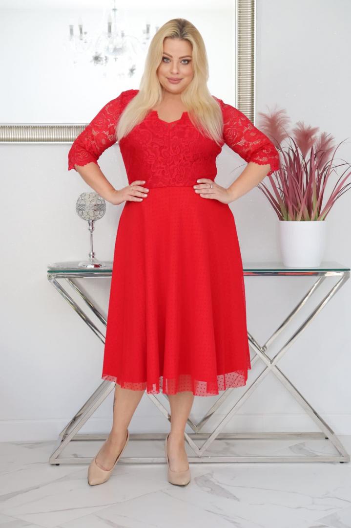 🇵🇱 Polski ProduktSukienka Pisla rozkloszowana elastyczna koronka koło z tiulu czerwona