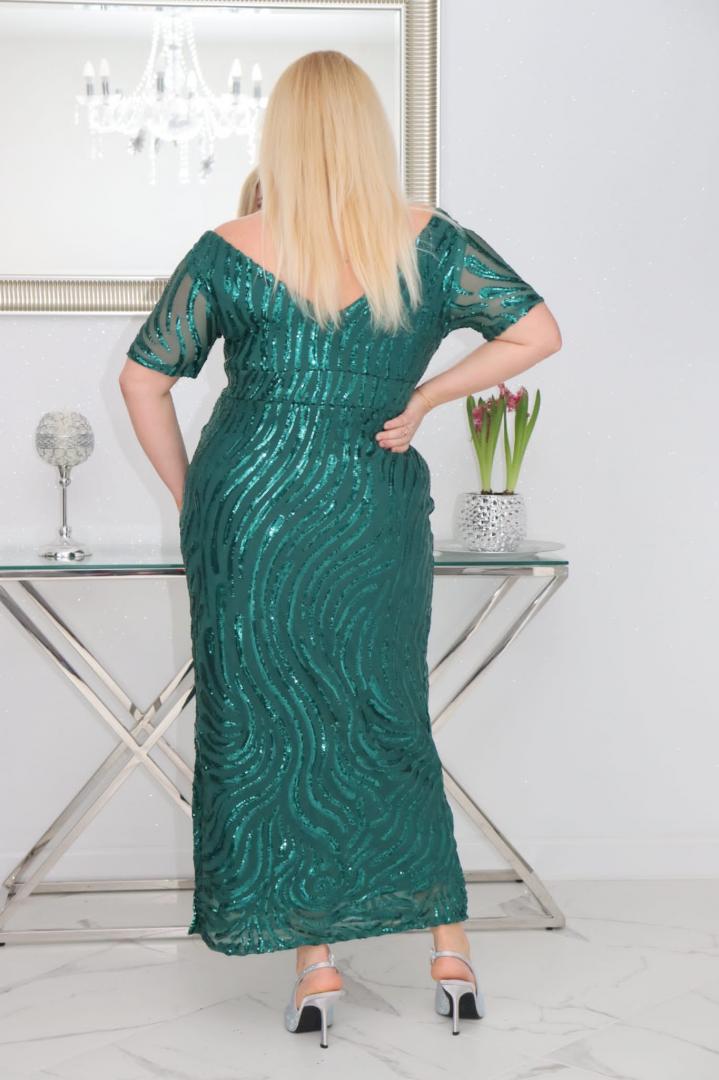 🇵🇱 Polski ProduktSukienka PRECIOSA maxi ołówkowa cekinowa kopertowy dekolt butelkowa zieleń