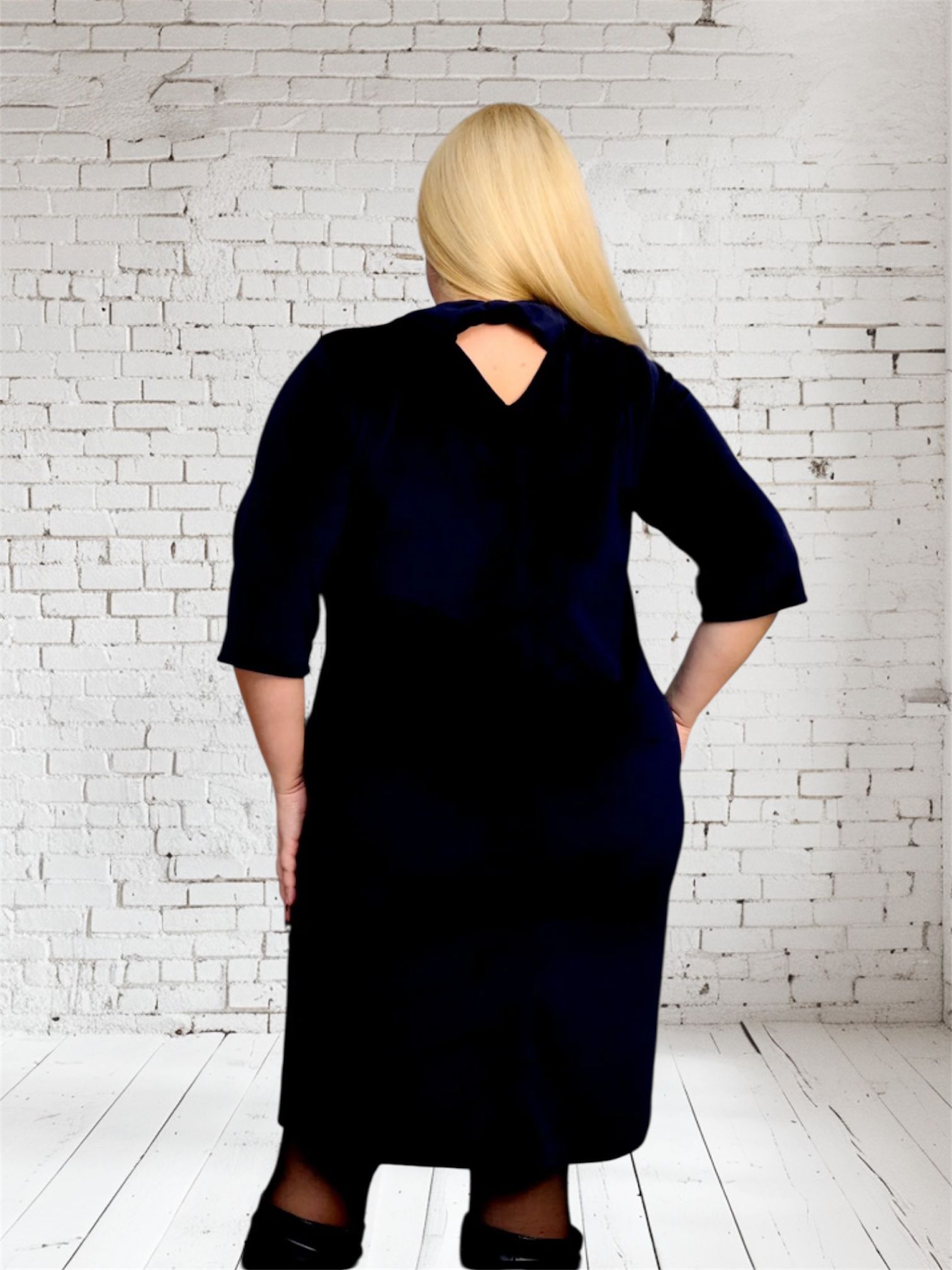 Wygodna welurowa sukienka z unikalnym detalem ? 100% bawełna. Czarna. KOD S1057.