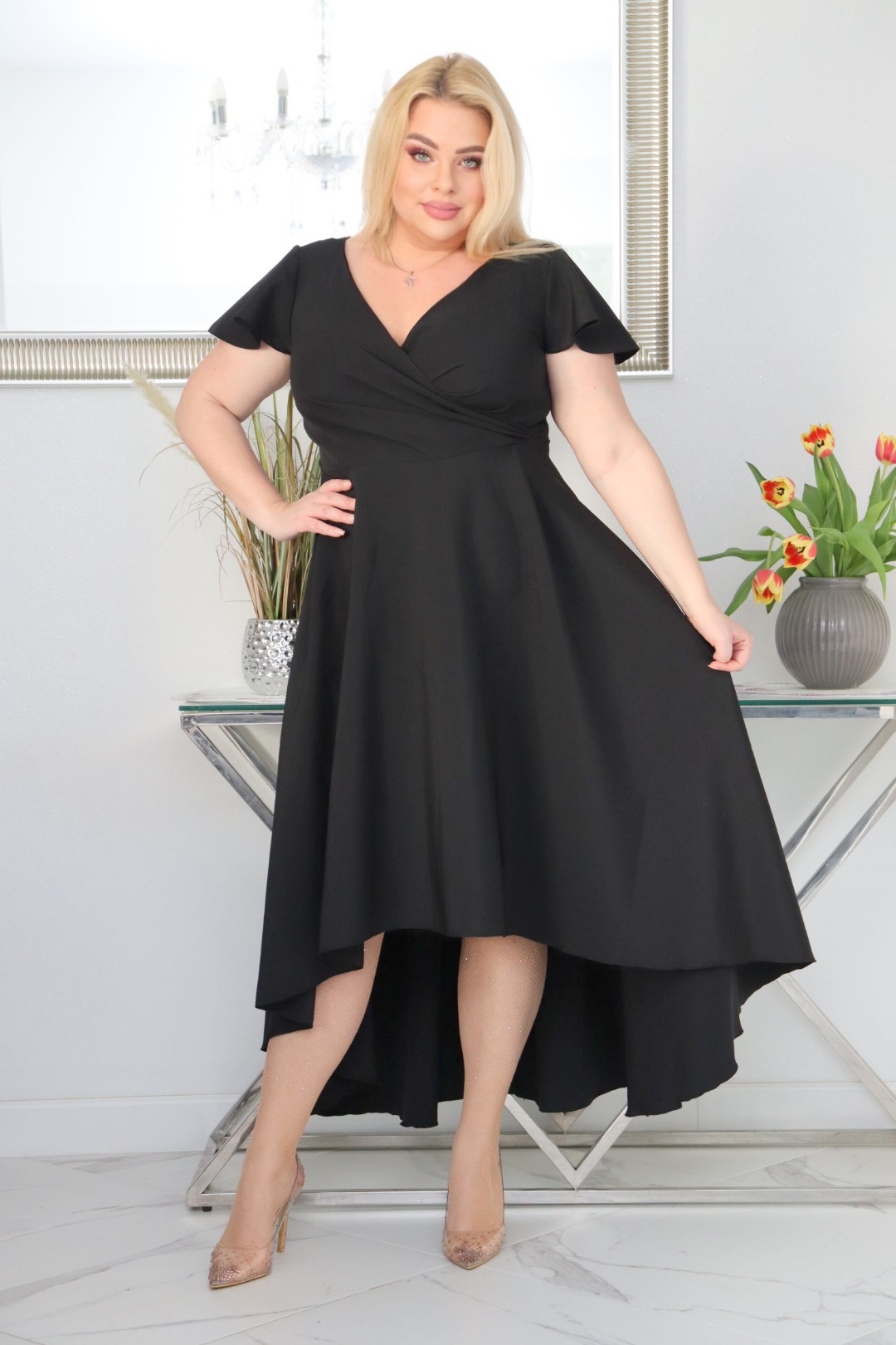 Sukienka Soraja asymetryczna rozkloszowana ekskluzywna kopertowy dekolt czarna WYPRZEDAŻ !