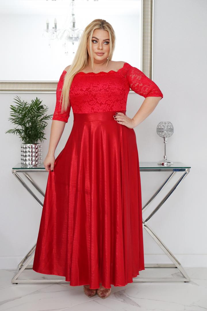 🇵🇱 Polski ProduktSukienka Tamara maxi wieczorowa rozkloszowana ekskluzywna hiszpanka koronka czerwona