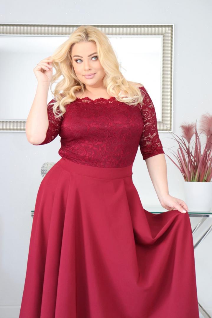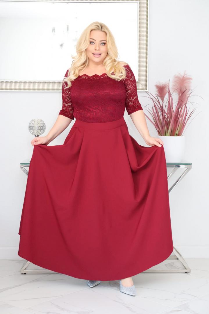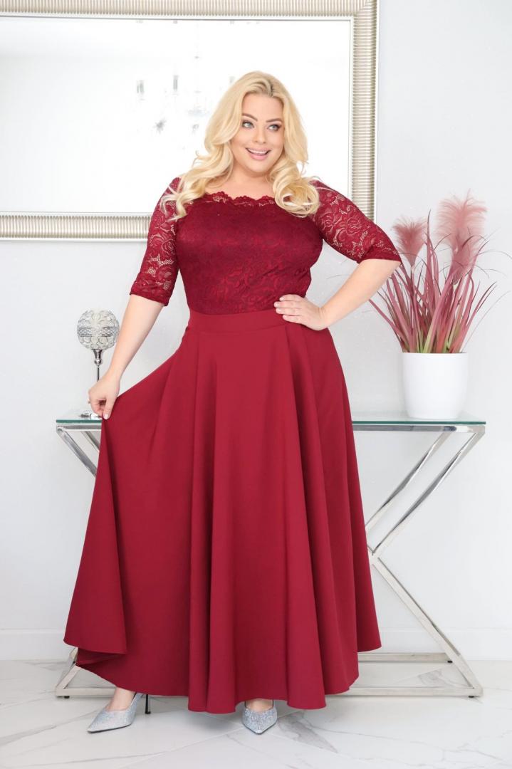 🇵🇱 Polski ProduktSukienka Tamara maxi wieczorowa rozkloszowana ekskluzywna hiszpanka koronka gładka bordowa