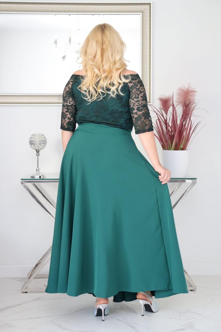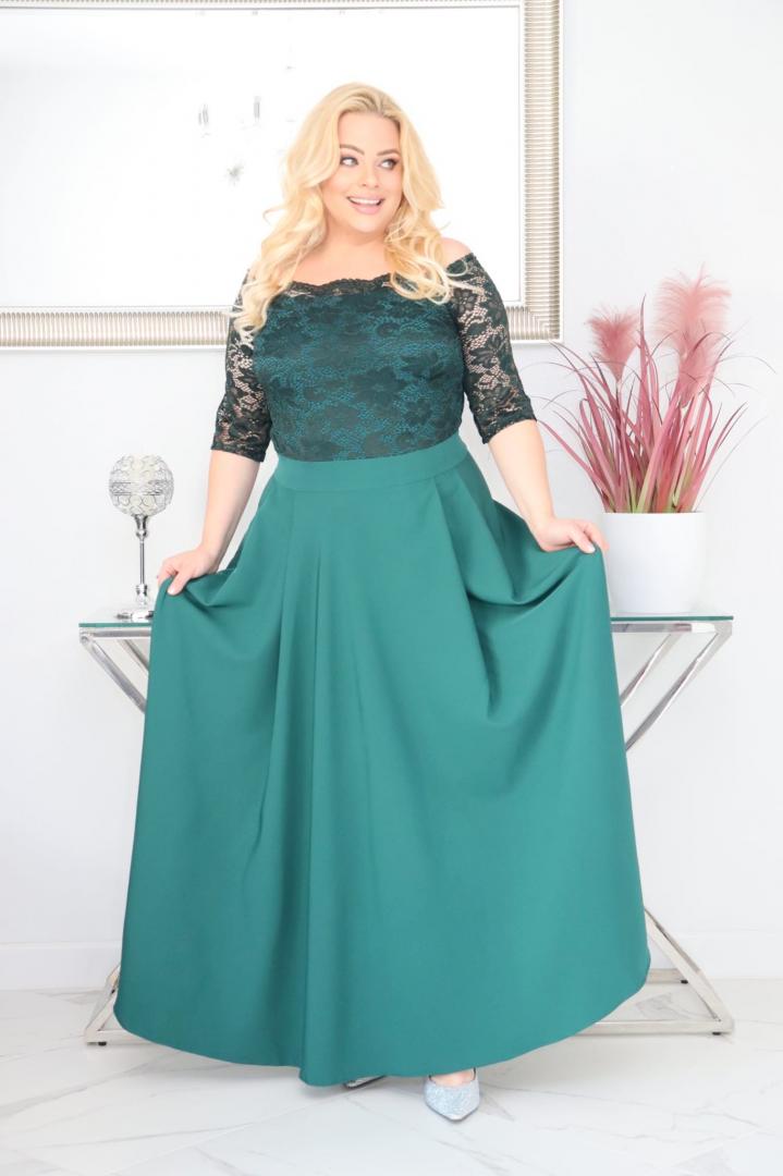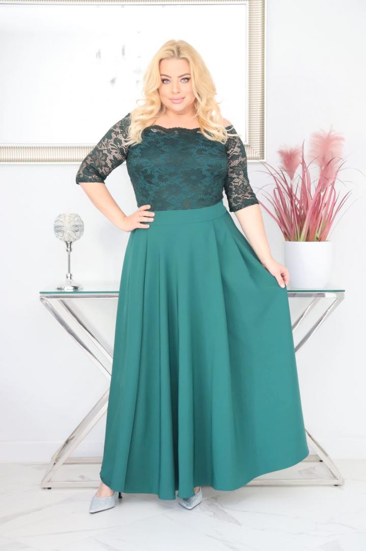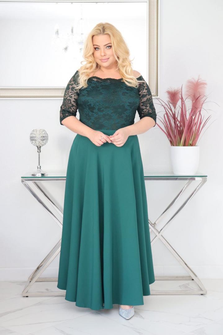 🇵🇱 Polski ProduktSukienka Tamara maxi wieczorowa rozkloszowana ekskluzywna hiszpanka koronka gładka butelkowa zieleń
