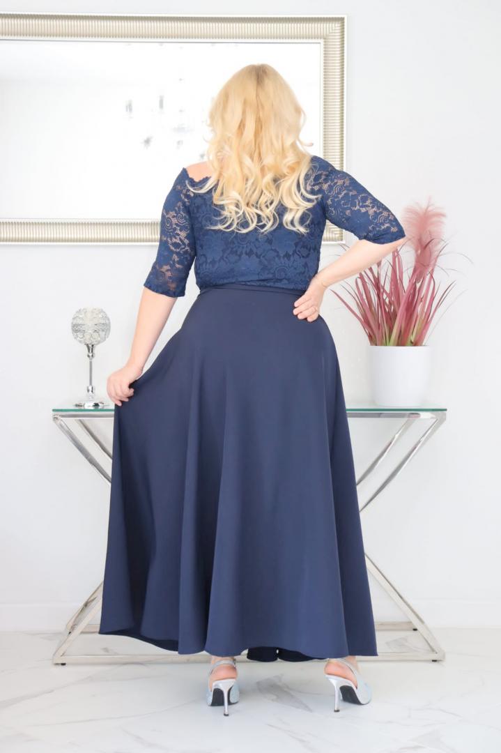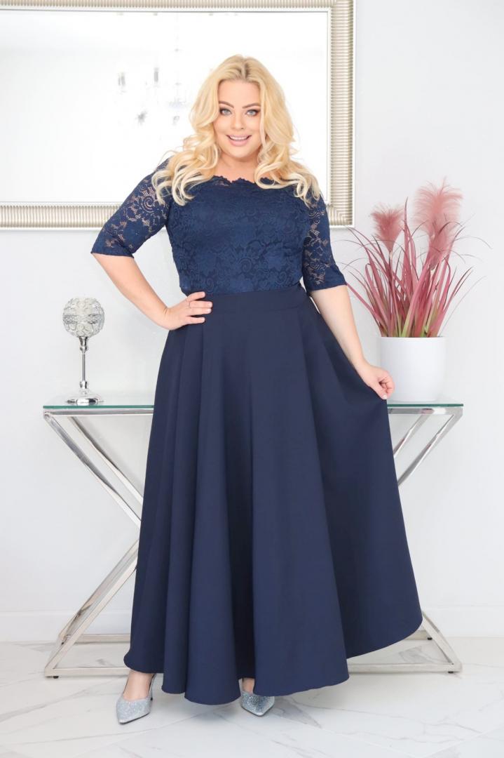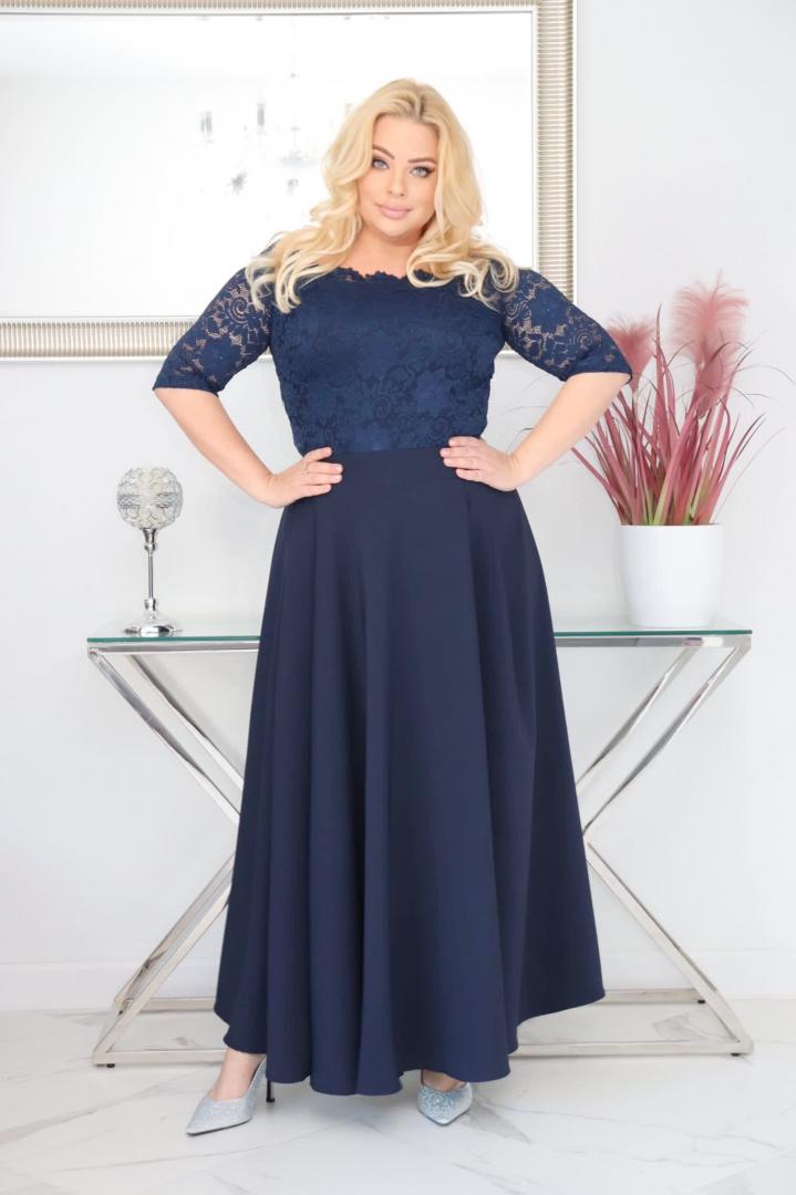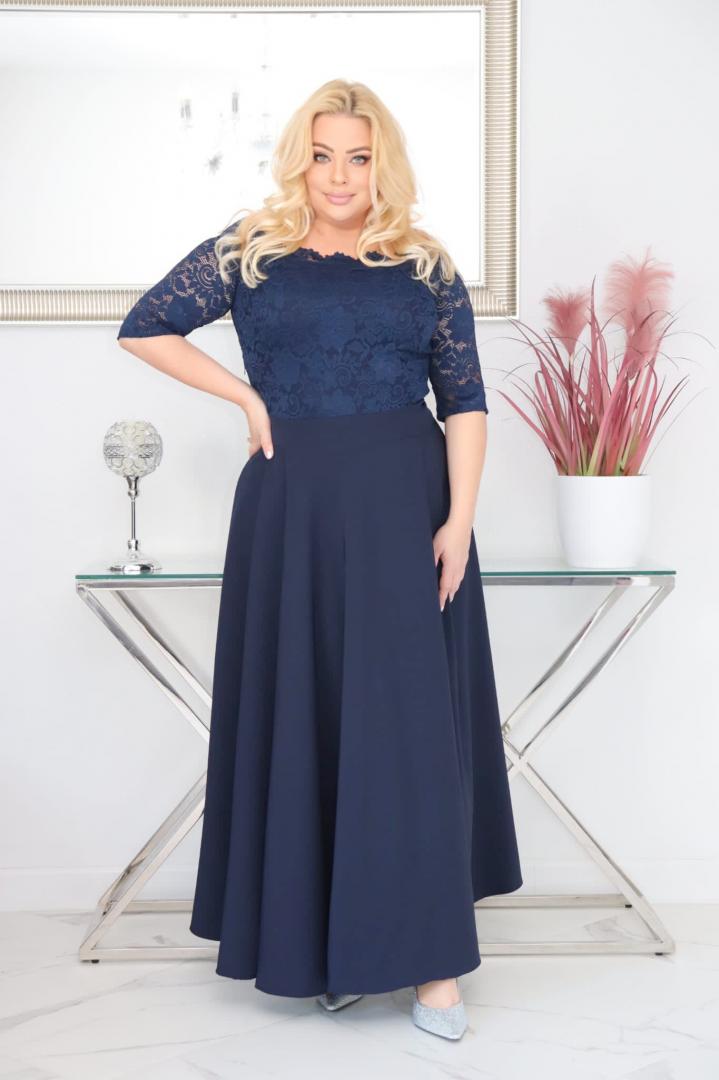 🇵🇱 Polski ProduktSukienka Tamara maxi wieczorowa rozkloszowana ekskluzywna hiszpanka koronka gładka granatowa