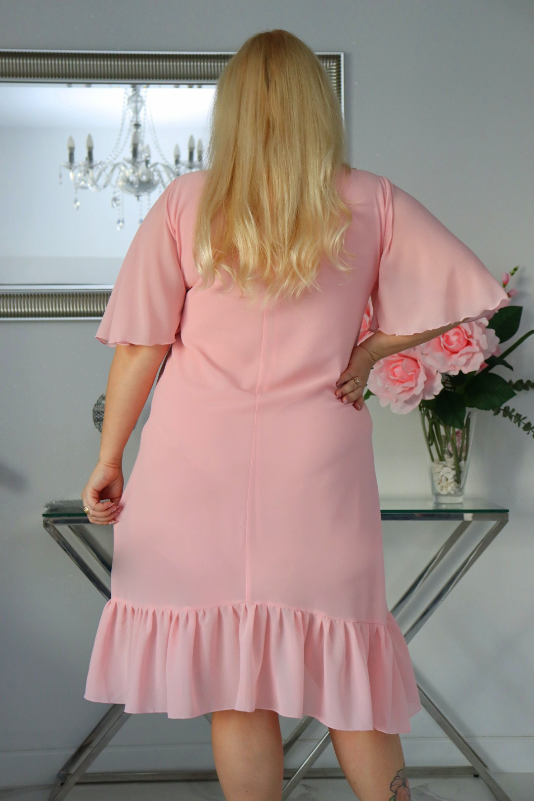 🇵🇱 Polski ProduktSukienka Tamira z falbanką z żorżety szyfonowa PUDROWY RÓŻ
